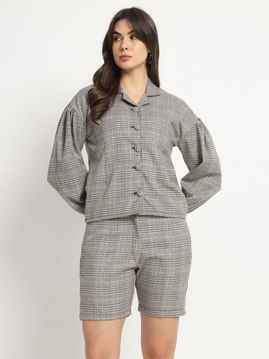 -28% OFFMETALLIC PLAIDED BLAZER & SHORTS SET