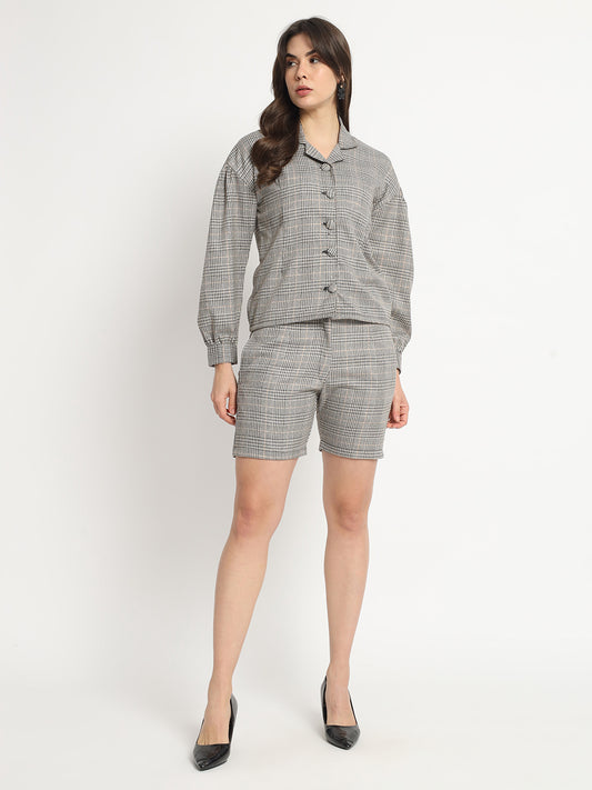 -28% OFFMETALLIC PLAIDED BLAZER & SHORTS SET
