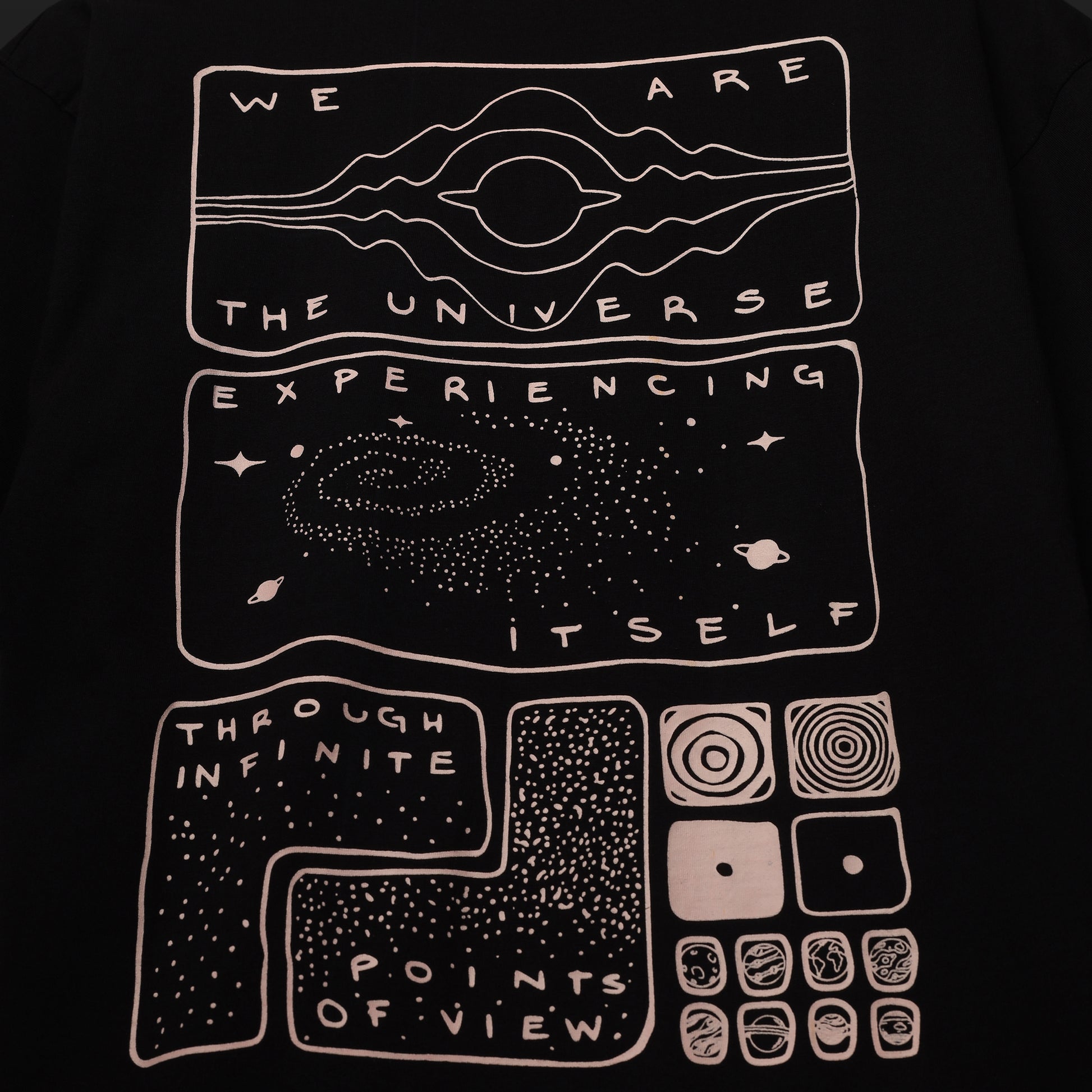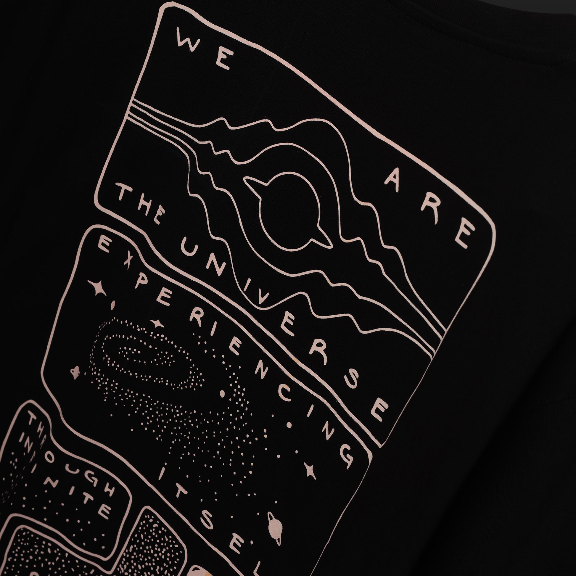 Inspired by the idea of interconnected consciousness, this design reflects the idea that you’re not separate from the universe. This is a wearable reminder that your perspective, thoughts, and emotions are unique - moving through you to the universe. This tee reminds you: You’re part of it all.